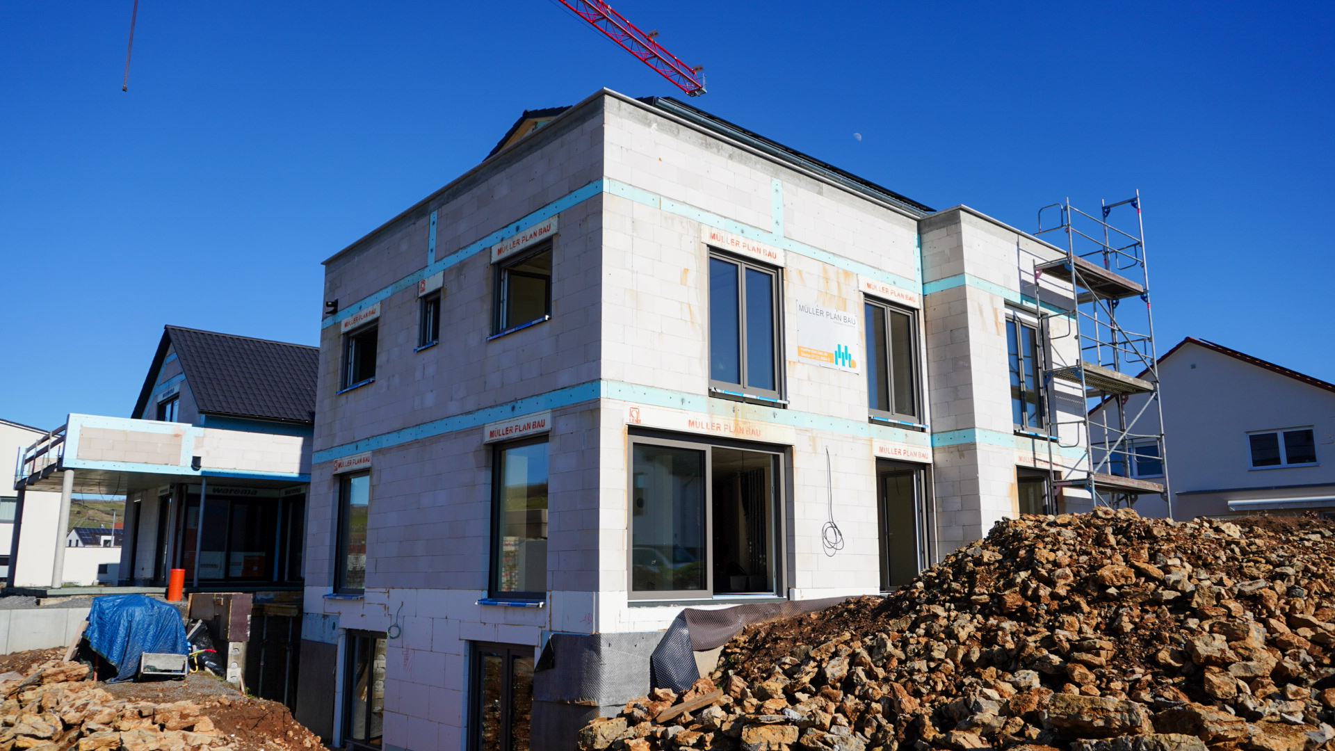 Wir bauen nach den aktuellsten energetischen Standards (GEG/KfW). Unsere Arbeiter legen Wert auf fachgerechten Einbau der Dämmung, die zu den Rohbauarbeiten dazugehören, um Wärmebrücken, die auf lange Sicht Bauschäden erzeugen können, zu vermeiden.